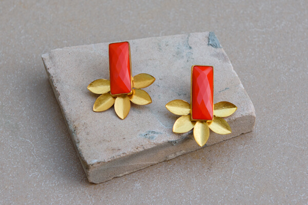 Handcrafted by skilled artisans in India, featuring semi-precious stones in 18kt gold-plated brass. As it’s handmade, each piece might have slight variations in colour, shape and size.