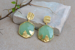 Handcrafted by skilled artisans in India, featuring semi-precious stones in 18kt gold-plated brass. As it’s handmade, each piece might have slight variations in colour, shape and size.