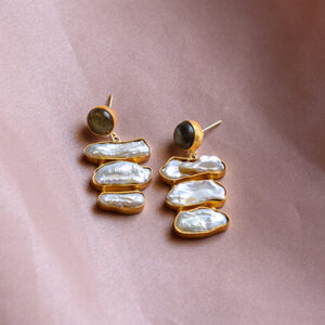 Handcrafted by skilled artisans in India, featuring semi-precious stones in 18kt gold-plated brass. As it’s handmade, each piece might have slight variations in colour, shape and size.